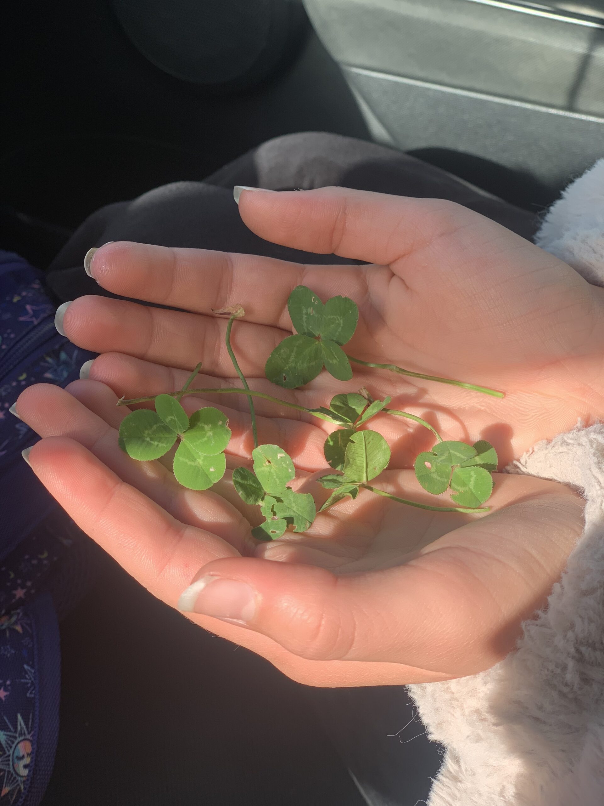 Moi je m’en souviens, tellement j’avais du mal à en trouver ! Pour ma fille il en est tout autre, dès qu’elle se dit « Tient j’ai envie de TROUVER un trèfle à quatre feuilles » elle se penche et est capable d’en trouver 6 en 30 secondes (photo à l’appuie de mon étonnement).